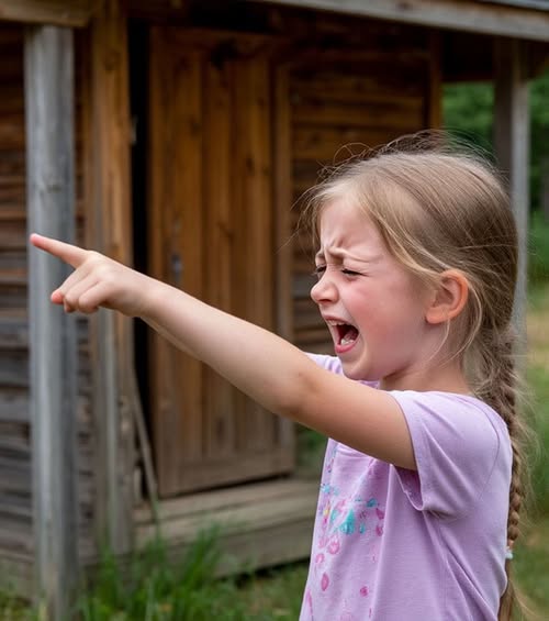 Посреди гравийной дороги стояла маленькая девочка. На ней были тапочки, тёмно-синяя кофта и чёрные брючки — явно слишком лёгкие для такой погоды. Лицо и руки были испачканы грязью, волосы растрёпаны, губы приоткрыты, будто она хотела закричать, но голос ей не повиновался.