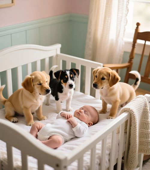 Прошла неделя, и дом снова наполнился звуками. Но на этот раз это был новый, пронзительный и чистый крик. На свет появился их сын – маленький, хрупкий, словно сотканный из утреннего света и надежды. Его появление в мире, который только что погрузился в траур, казалось необъяснимой загадкой, странной игрой судьбы. Но когда новорожденного впервые принесли домой и положили в его колыбельку, стоявшую рядом с корзинкой щенков, произошло нечто необъяснимое. Три крошечных комочка зашевелились, забавно завиляли своими маленькими хвостиками и, преодолевая собственную слабость, потянулись к ребенку. Они тихонько повизгивали, тыкались своими влажными носиками в край одеяла, словно пытаясь опознать своего. Мальчик бессознательно вытянул крохотную ручку, и его пальчики коснулись мягкой шерстки. В тот самый миг между ними возникла невидимая нить, и с этой секунды они стали одним целым, неразлучными спутниками.